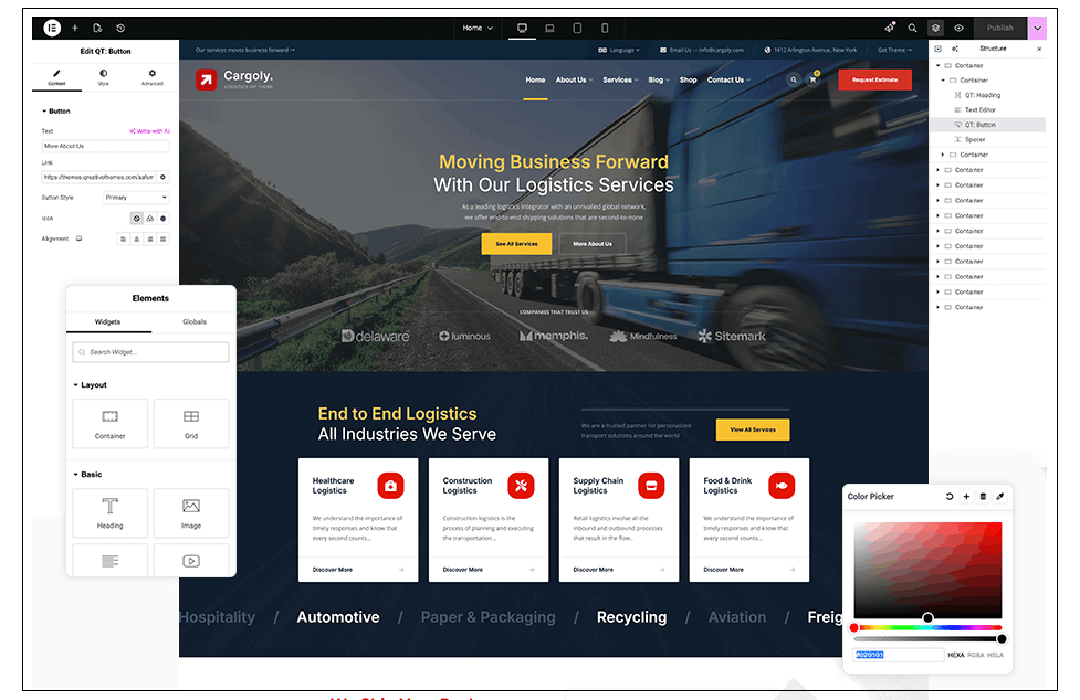 70+ Elementor Widgets for Logistics Websites