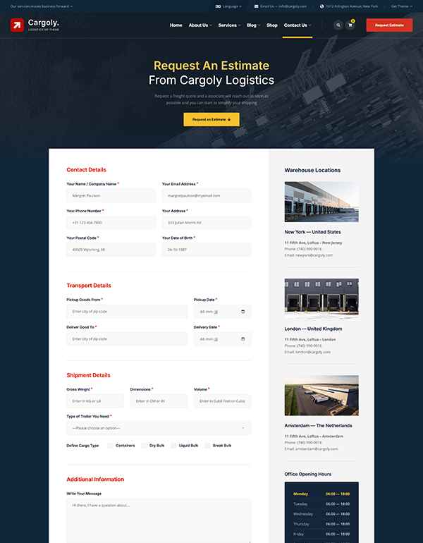 Unlike generic business themes, Cargoly is designed specifically to demonstrate the reliability, capacity, and coverage that win B2B logistics contracts.